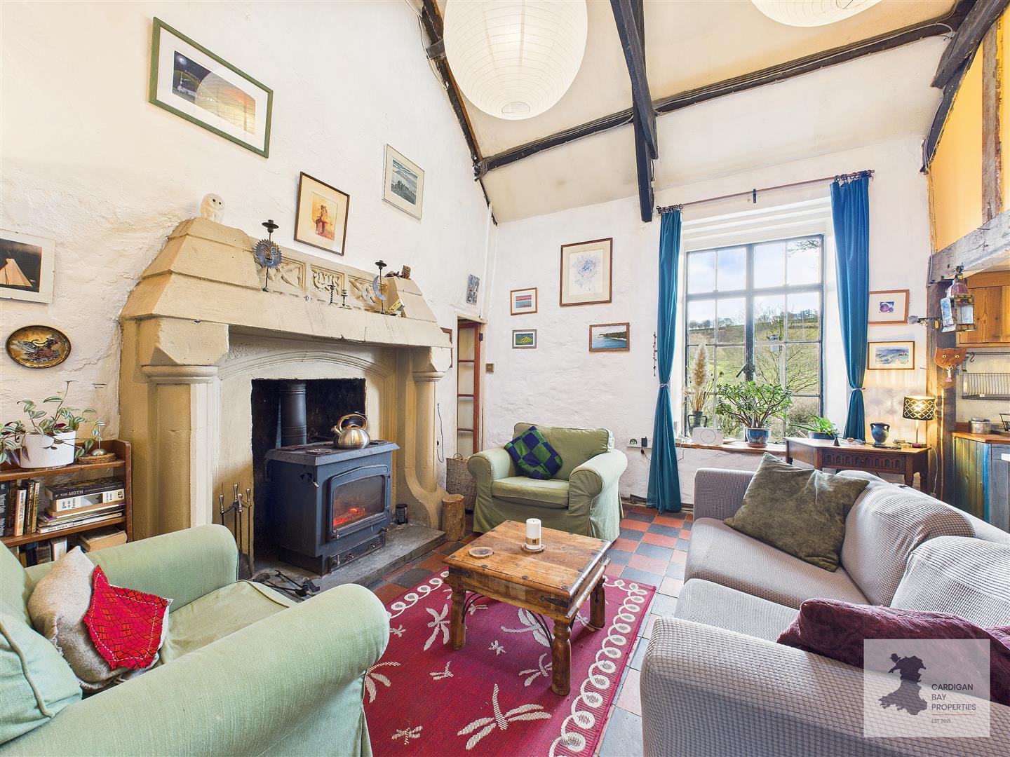 The living room sits to the front of the property and is a generous, comfortable space with a large picture window framing the river and surrounding countryside. It’s easy to imagine this being the main everyday room, with plenty of space for full lounge furniture while keeping the view firmly centre stage.