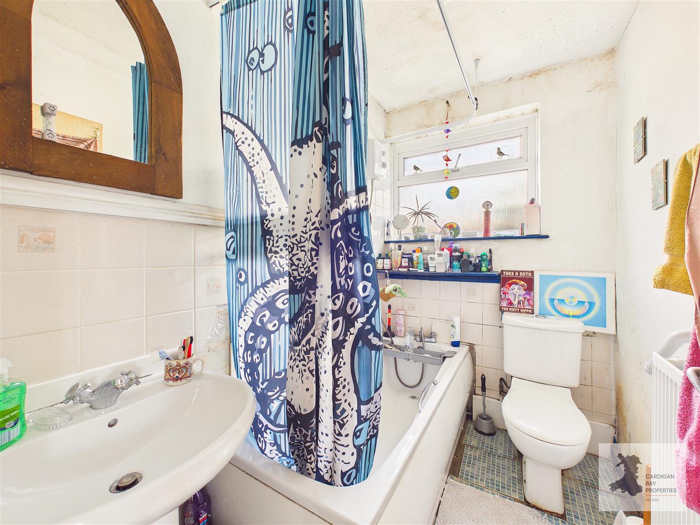 The bathroom includes a bath with shower over, wash hand basin and WC. As with the kitchen, it is serviceable but ready for refurbishment.