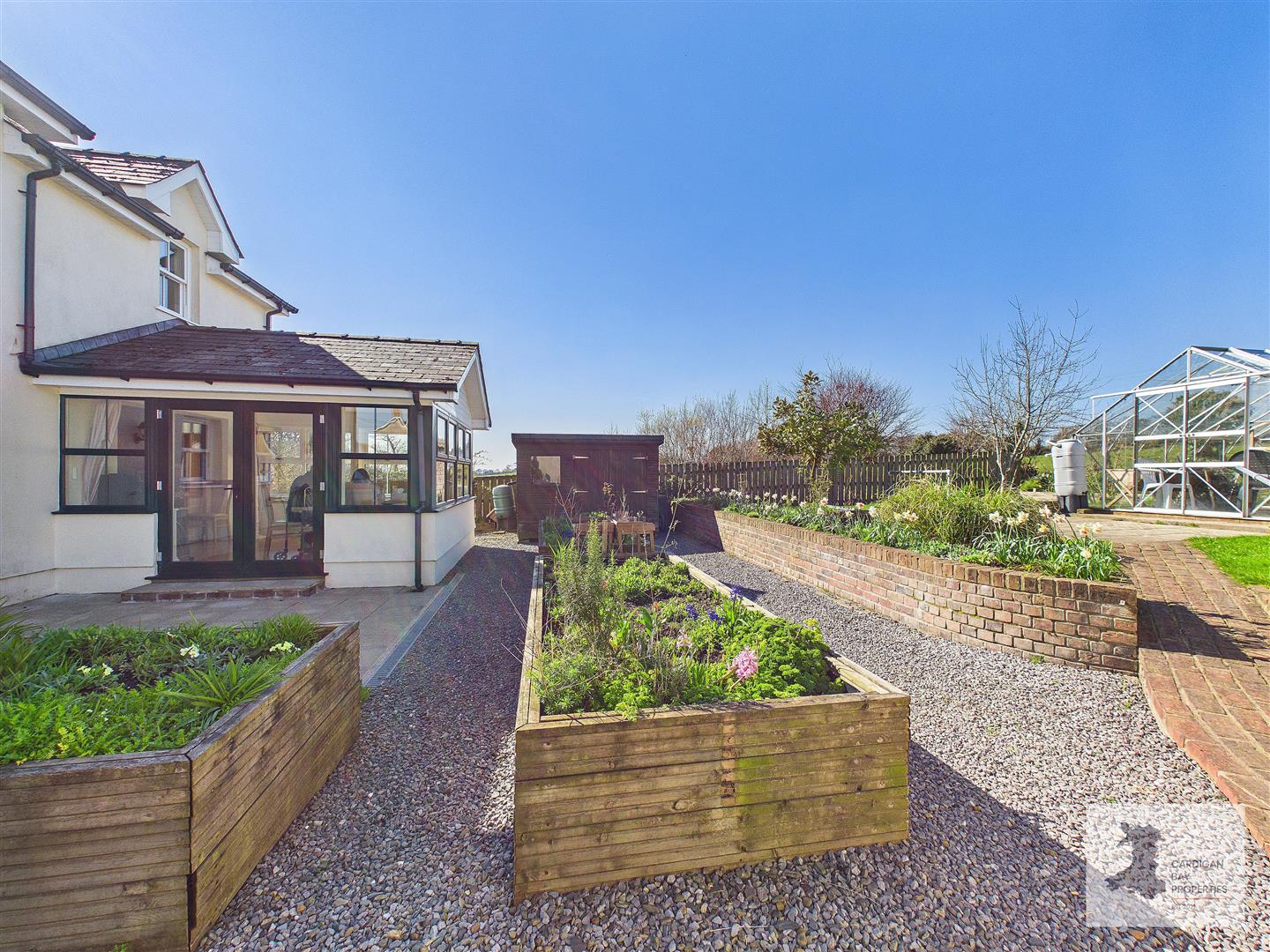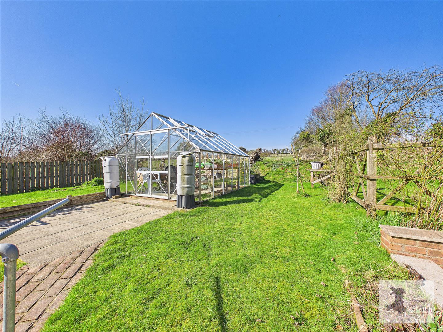 Externally, the rear garden is set up for straightforward use, with a patio seating area directly off the garden room and a lawned section beyond. There is space for planting, growing or simply keeping things manageable depending on preference. A greenhouse and additional garden features add to the overall usability of the space, as well as a garden shed.