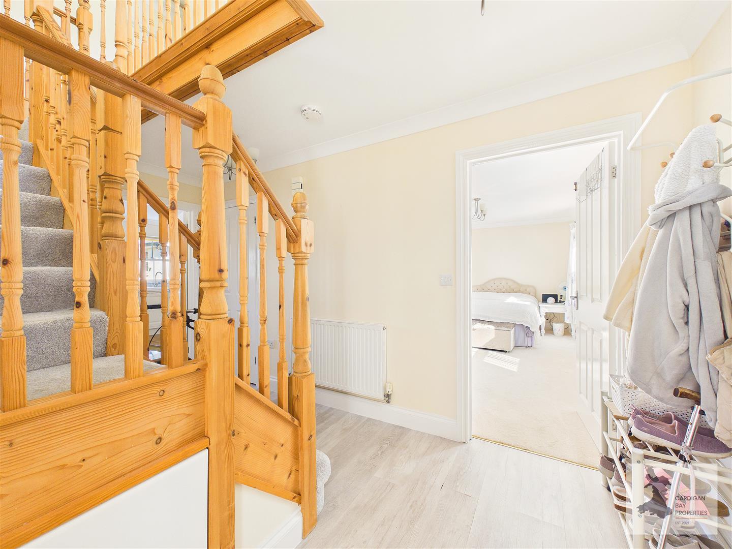 Upstairs, the galleried landing adds a sense of openness, with a window to the front bringing in natural light and giving a view over the surrounding area.