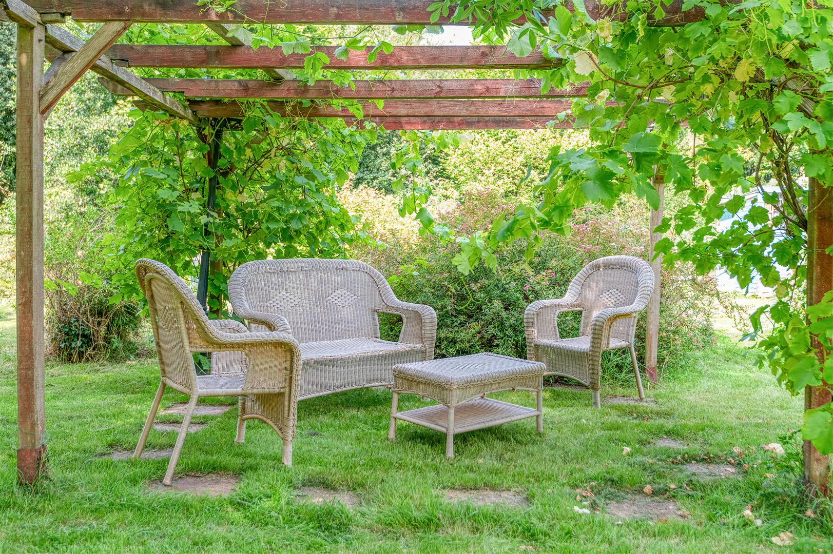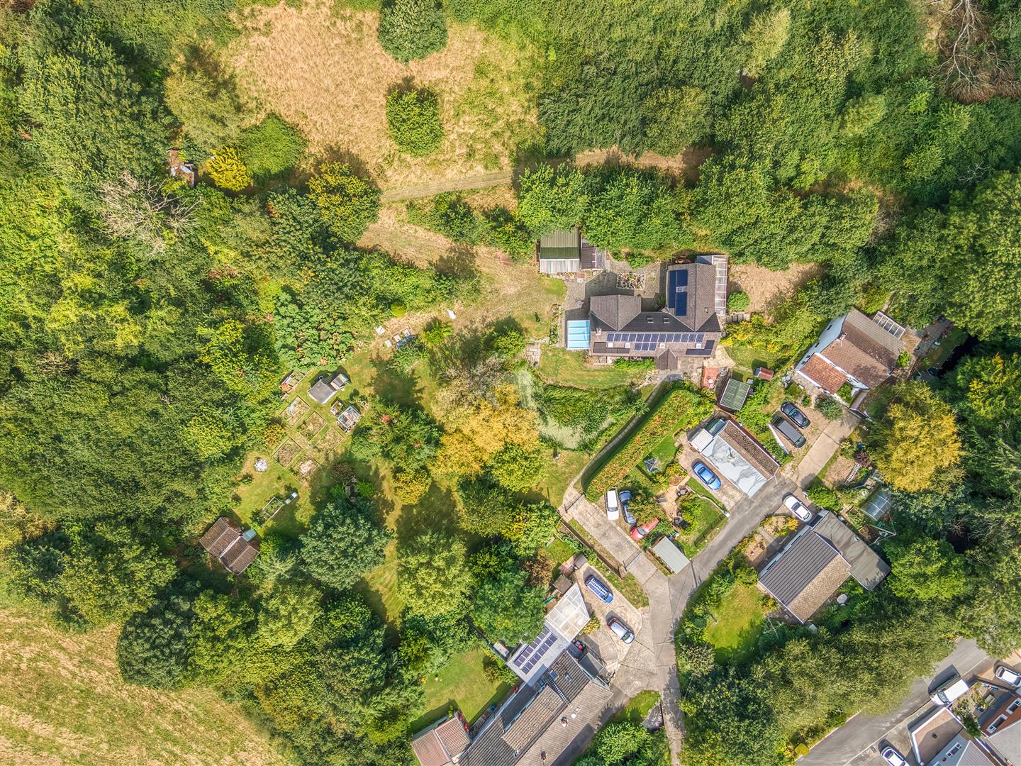 The two-acre grounds are a highlight in themselves. The pond and weeping willow create a striking front garden feature, while lawns sweep around to the front, side and rear where a productive vegetable garden takes shape. Raised beds, a greenhouse, and sheds provide all that is needed for growing, while beehives dotted around the site add to the biodiversity. Beyond the cultivated sections, paths wander through rewilded areas where pollinators thrive. Tiered ground at the rear holds a former paddock, now adding to the land’s versatility.