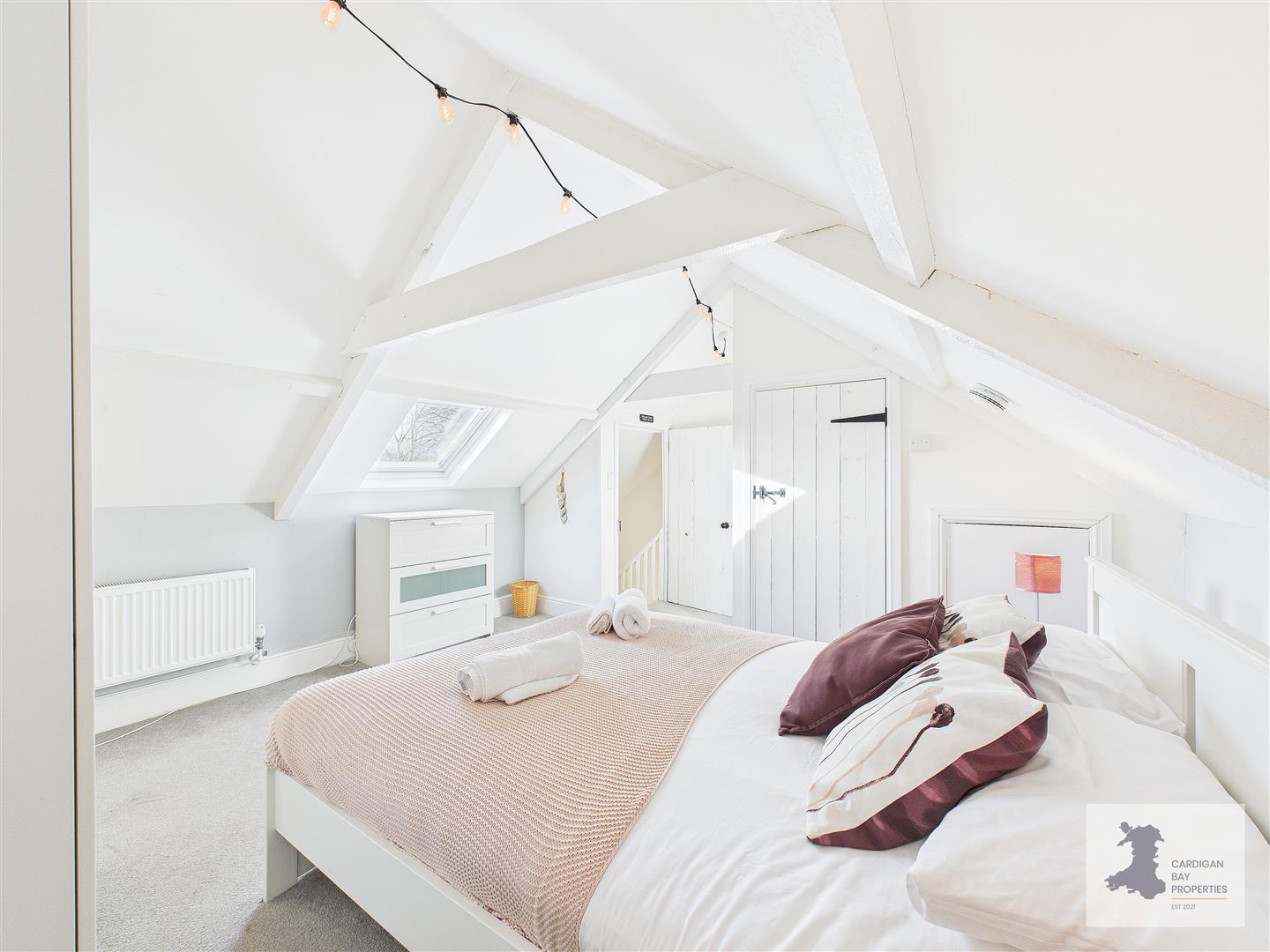 Stairs rise from the landing to the second floor where the top bedroom spans the depth of the roof space. This room features exposed beams, some reduced headroom in places and an en-suite shower room. It works well as a main bedroom, giving a sense of separation from the floor below and adding further flexibility to how the house can be used.