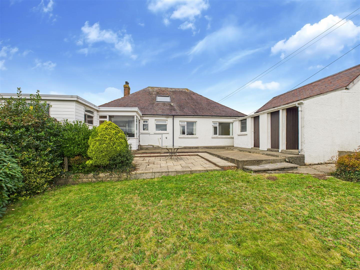 The bungalow connects neatly to the back garden through a side door, offering security and ease of access. The garden itself is a lovely mix of mature shrubs and trees, with several useful outbuildings providing space for garden tools and equipment. A paved patio area offers a pleasant place to sit and take in the views, making it a relaxing space to enjoy throughout the year.
