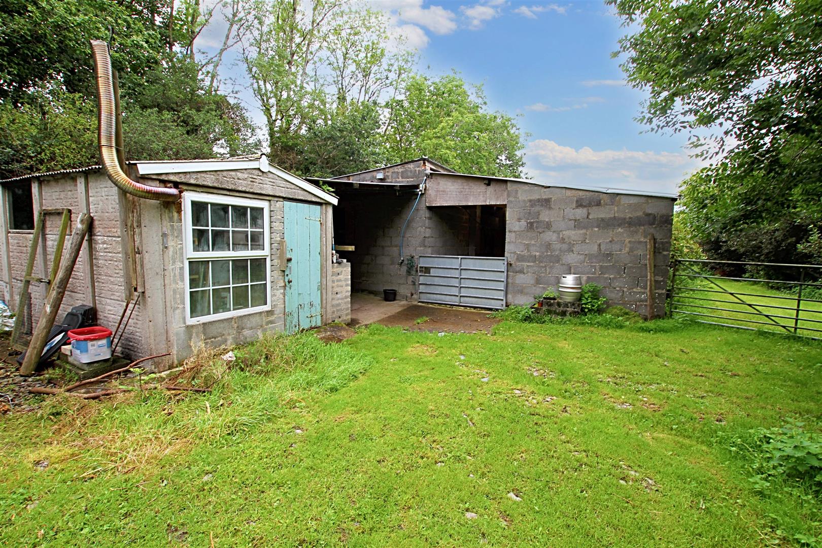 The land rises behind the property, accessed via the main driveway onto a central track. There is a useful level area to the side, perfect for veg growing or other uses. Further along is the main outbuilding range, including a substantial agricultural barn currently used for livestock, storage, hay and equipment. Doors lead through to stable areas, and behind the barn sits a shed set up as a comfortable ‘man cave’ with a wood-burning stove. A track runs to the side of the barn to the rear which leads to a productive vegetable garden with raised beds sits to one side, and a polytunnel provides extended growing space.