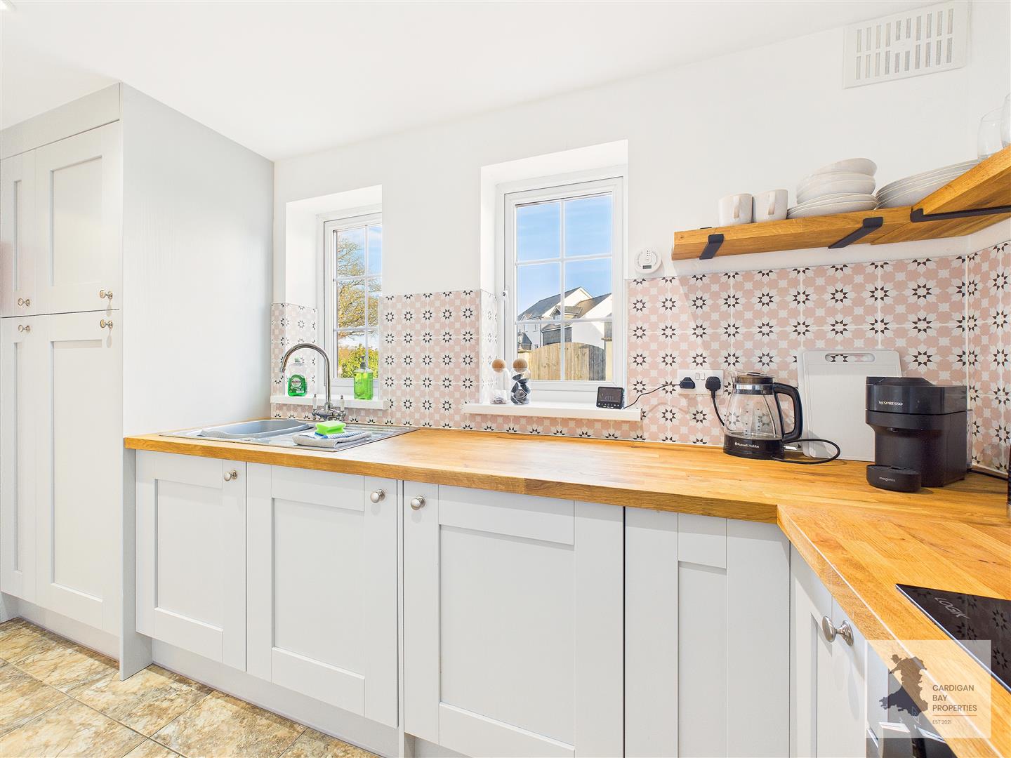 Recently updated, this cottage opens into a hallway and through to the living room, where a wood-burning stove and French doors set the tone for the rest of the layout. The kitchen is neatly fitted with new, contemporary units and integrated appliances. The upgraded ground-floor bathroom sits across the hall, and the dining room works well either as a dining space or a third ground-floor bedroom. Upstairs there are two double bedrooms with some reduced headroom to the sides and Velux windows. The garden is an enclosed mix of patio and lawn, ideal for holidaymakers returning from a day at the beach.